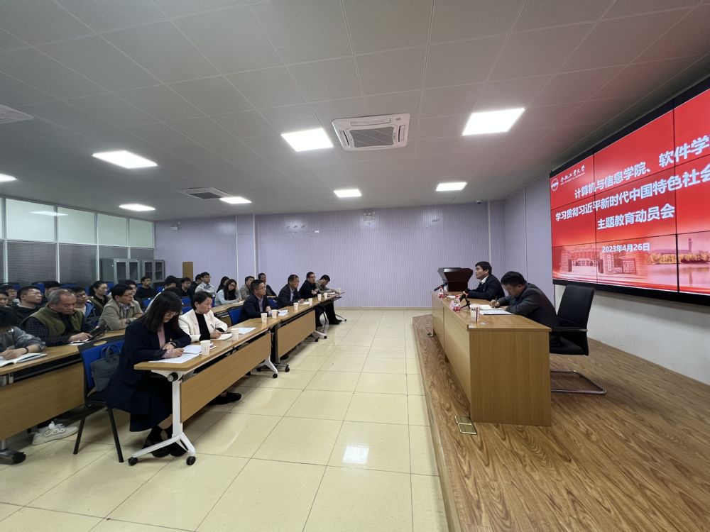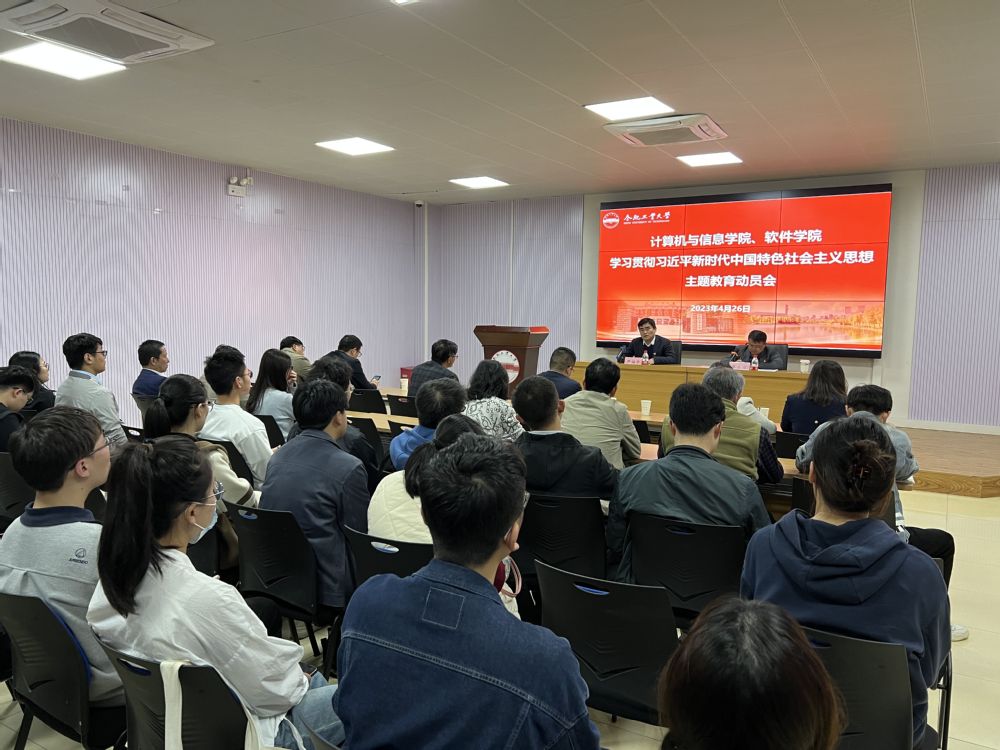 根据校党委的部署和要求,以及学院学习贯彻习近平新时代中国特色社会主义思想主题教育工作方案的安排,4月26日下午,bat365官网登录入口、软件学院学习贯彻习近平新时代中国特色社会主义思想主题教育动员会在翡翠湖校区综合楼多功能厅召开。学校主题教育督查指导组副组长、第二督导组组长严福平出席并作指导讲话,学院党委书记年永琪主持会议。