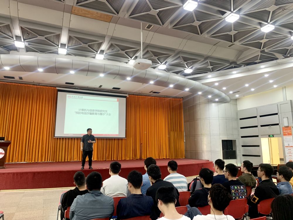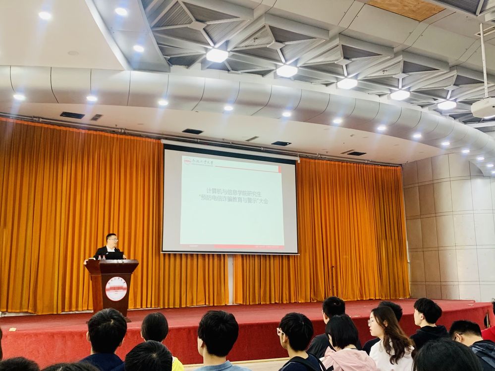 为了让同学们进一步了解网络诈骗,增强我院研究生对网络诈骗的防范意识,营造浓厚的校园反诈氛围,bat365官网登录入口于4月29日上午在综合楼301召开防诈骗安全教育与警示大会,学院全体研究生参加,党委学生工作部、学院分管领导以及党委保卫部的相关老师出席了本次大会。