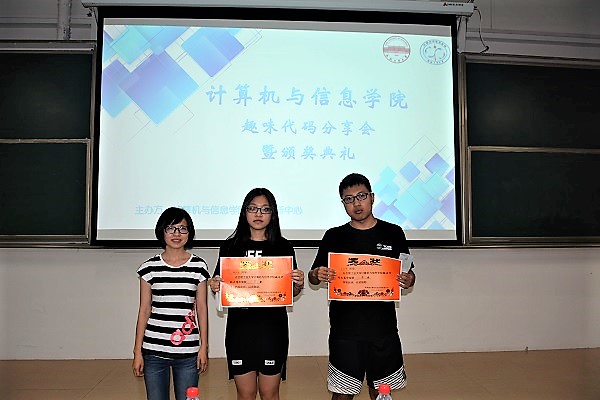 为加强我院科技节的延续性和参与度,提高学生对于编程的兴趣以及创新创造能力。6月8日,该学院举办趣味代码大赛颁奖典礼暨成果分享会,学院相关负责老师和全体参赛选手出席本次会议。