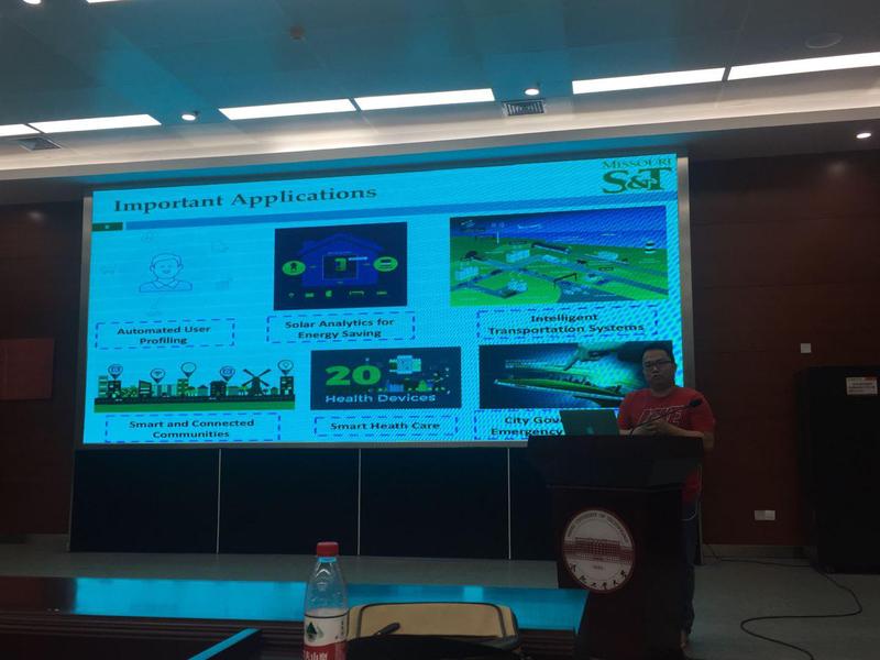 2018年6月20日,应bat365官网登录入口邀请,美国密苏里科技大学傅衍杰教授在翡翠湖校区科教大楼第四会议室做了《Collective Representation Learning in Spatial and Temporal Data Environments: Techniques and Applications》的学术报告。来自我院多个专业的教师、研究生和本科生参加了此次学术交流活动。