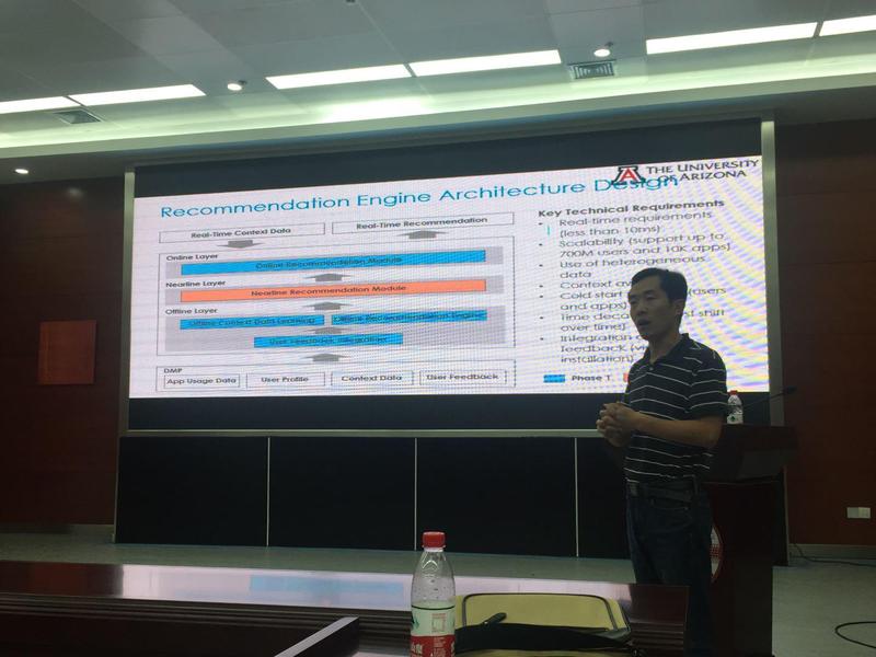 葛永教授从移动手机的APP巨大商机谈起,详述了所在团队在移动手机平台中的两项智能商务应用:流失用户预测及个性化App推荐。在流失用户预测中,葛教授介绍了如何通过用户及APP交互数据,将APP用户流失问题定义为动态图中的边流失问题,进一步葛教授介绍了如何融合深度神经网络进行流失用户问题预测。此后,葛教授以工业界App平台为例,介绍了如何在工业界如何通过具体的平台特征,部署实现完备的App推荐系统。