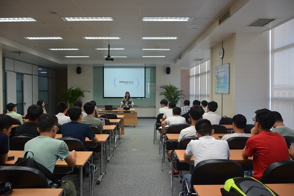 活动伊始,中移在线党群人力部相关人员总体介绍了公司目前的概况、发展方向以及所需人才专业,使同学们对中移公司有了初步的了解;随后该公司系统支撑团队介绍了公司系统开发及维护等情况以及计算机专业在公司相关工作的具体实践案例,使同学们零距离感受自身所学的专业技能是如何应用到社会生产实践的;智能客服团队则介绍了公司智能客服产品,工具以及具体应用。宣讲会现场同学们与公司相关负责人员互动不断,对未来工作的一些疑问也都得到了很详细的解答。活动的最后,公司工作人员带领同学们参观了公司的一线工作现场,帮助同学们近距离观察包括生产运营过程系统开发等相关工作。