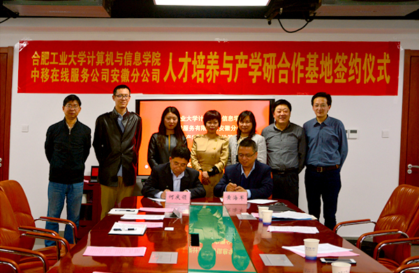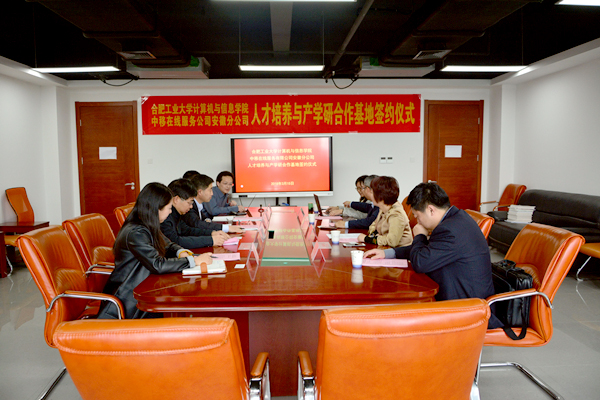 3月16日下午,bat365官网登录入口与中移在线服务有限公司安徽分公司产学研合作签约仪式在翡翠科教楼A1106举行。中移在线服务公司安徽分公司总经理黄海军、副总经理刘晓梅、人力资源部经理柯晓岚、系统支撑团队主管万鹏、bat365官网登录入口党委副书记、副院长何庆领和各系主任等相关老师参加签约仪式。