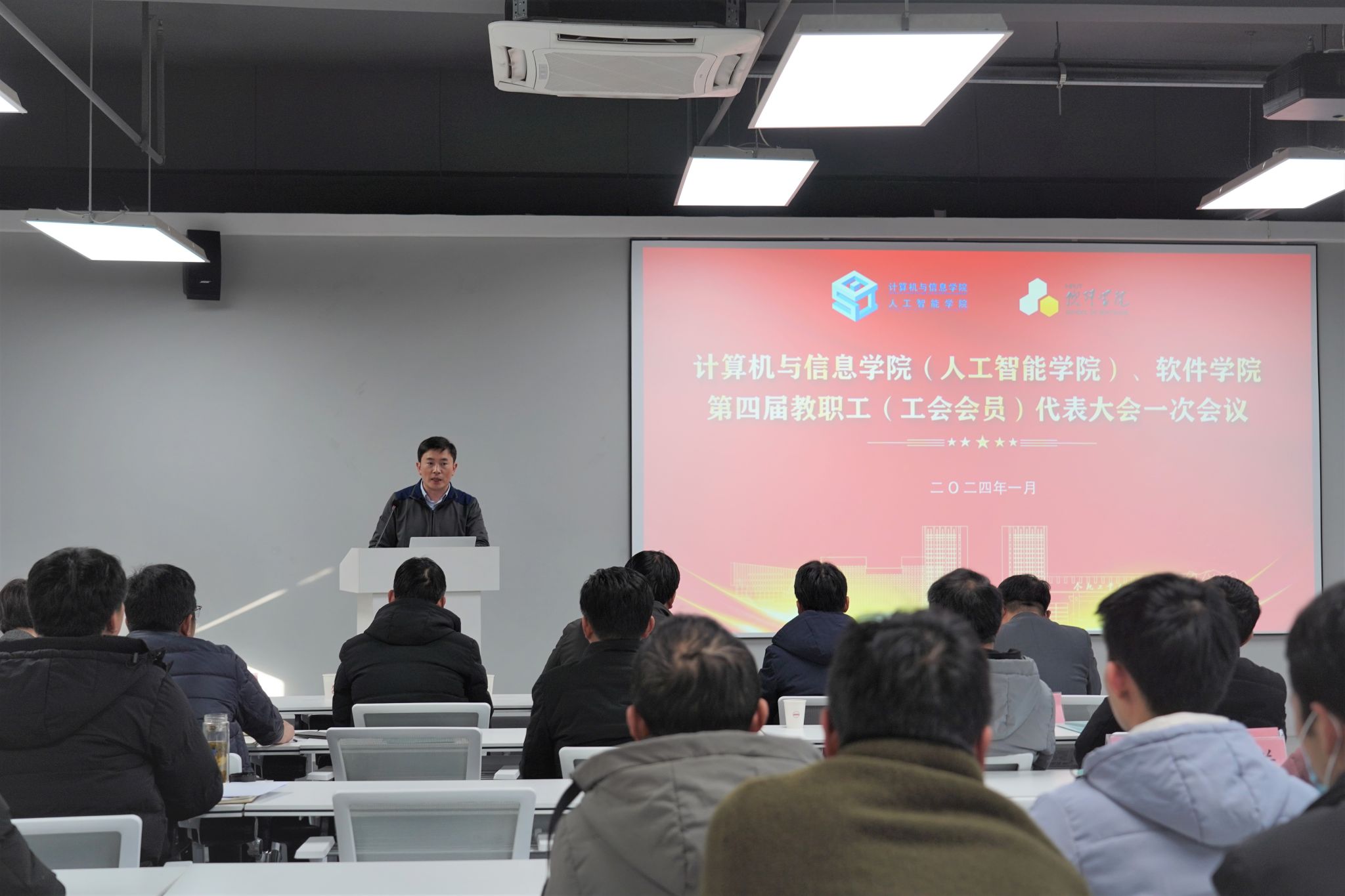 2024年1月24日,bat365官网登录入口、软件学院第四届教职工代表大会暨工会会员代表大会在翡翠科教楼B501报告厅隆重举行。学校工会主席胡兴祥参加会议。学院党委副书记储文静主持会议。